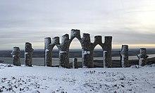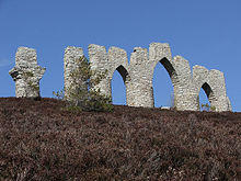 The Fyrish Monument is a monument built in 1782 on Fyrish Hill (Scottish Gaelic: Cnoc Fhaoighris), in Fyrish in Evanton, near Alness, Easter Ross, Scotland, on the orders of Sir Hector Munro, 8th of Novar, a native lord of the area who had served in India as a general. As the local population were being cleared off the land they had worked for centuries by the Lords of the Land, survival was a problem and so it was built to keep the locals in labour. It was said that Sir Hector rolled stones from the top of the hill to the bottom, thereby extending the amount of time worked and paying the labourers for additional hours.[1]