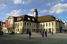 Göppingen and the nearby village of Jebenhausen were home to a thriving Jewish community from 1777 until the Second World War. In 1777, the Baron von Liebenstein issued a "Letter of Protection" granting Elias Gutmann and other Jews permission to settle in Jebenhausen. The community grew and peaked in the mid-1800s, with the population center shifting from Jebenhausen to Göppingen and a substantial emigration of Jewish families to America by the late 19th Century.[2] The Göppingen synagogue, constructed in 1881, was destroyed during the Kristallnacht from 9–10 November 1938.[3] Detailed records of the communities were collected by Rabbi Dr. Aron Tänzer, who served the community from 1907-1937, and who was also a driving force behind the establishment of the secular city library in Göppingen.[4] A comprehensive Jewish community history, Die Geschichte der Juden in Jebenhausen und Göppingen, was first produced by Tänzer in 1927, on the 150th anniversary of the settlement of Jebenhausen, and re-released in 1988 by the city of Göppingen with updated material added by Karl-Heinz Ruess.[5] The Jewish Museum in Jebenhausen, opened in 1992, documents and preserves the history of the Jewish community of Jebenhausen and Göppingen.[6]