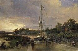 The Göta Canal was officially opened on 26 September 1832. Von Platen himself did not live to see the completion of the canal, having died shortly before its opening. However, it was never an economic success. The arrival of the railways in 1855 quickly made it redundant, as trains could carry passengers and goods far more rapidly and did not have to shut down with the arrival of winter, which made the canal impassable for five months of the year.[8] By the 1870s, the canal's goods traffic had dwindled to just three major types of bulk goods - forest products, coal and ore, none of which required rapid transportation. Traffic volumes stagnated after that and never recovered.[1]