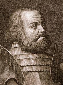 Gottfried "Götz" von Berlichingen (1480 – 23 July 1562), also known as Götz of the Iron Hand, was a German (Franconian) Imperial Knight (Reichsritter), mercenary, and poet. He was born around 1480 into the noble family of Berlichingen in modern-day Baden-Württemberg. Götz bought Hornberg Castle (Neckarzimmern) in 1517, and lived there until his death in 1562.[1]