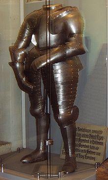 Berlichingen agreed to this, and remained near the Hornberg until Charles V, Holy Roman Emperor, released him from his oath in 1540. He served under Charles in the 1542 campaign against the Ottoman Empire of Suleyman the Magnificent in Hungary, and in 1544 in the Imperial invasion of France under Francis I of France.[4] After the French campaign, Berlichingen returned to the Hornberg and lived out the rest of his life in relative peace. He died on 23 July 1562 in Hornberg Castle at the age of 81 or 82. Berlichingen married twice and left three daughters and seven sons to carry on his family name.[4]