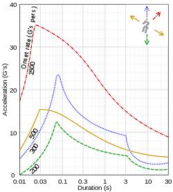 Human tolerances depend on the magnitude of the gravitational force, the length of time it is applied, the direction it acts, the location of application, and the posture of the body.[8][9]:350