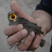 Red gape color has been shown in several experiments to induce feeding. An experiment in manipulating brood size and immune system with barn swallow nestlings showed the vividness of the gape was positively correlated with T-cell–mediated immunocompetence, and that larger brood size and injection with an antigen led to a less vivid gape.[47] Conversely, the red gape of the common cuckoo (Cuculus canorus) did not induce extra feeding in host parents.[48] Some brood parasites, such as the Hodgson's hawk-cuckoo (C. fugax), have colored patches on the wing that mimic the gape color of the parasitized species.[49]