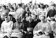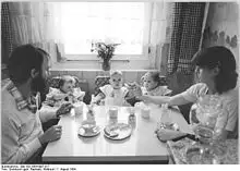 The opening of a border gate between Austria and Hungary at the Pan-European Picnic on 19 August 1989 then set in motion a chain reaction, at the end of which there was no longer a GDR and the Eastern Bloc had disintegrated. It was the largest escape movement from East Germany since the building of the Berlin Wall in 1961. The idea of opening the border at a ceremony came from Otto von Habsburg, who proposed it to Miklós Németh, the then Hungarian Prime Minister, who promoted the idea.[58] The patrons of the picnic, Habsburg and the Hungarian Minister of State Imre Pozsgay, who did not attend the event, saw the planned event as an opportunity to test Mikhail Gorbachev's reaction to an opening of the border on the Iron Curtain. In particular, it tested whether Moscow would give the Soviet troops stationed in Hungary the command to intervene. Extensive advertising for the planned picnic was made by the Paneuropean Union through posters and flyers among the GDR holidaymakers in Hungary. The Austrian branch of the Paneuropean Union, which was then headed by Karl von Habsburg, distributed thousands of brochures inviting GDR citizens to a picnic near the border at Sopron (near Hungary's border with Austria).[59][60][61] The local Sopron organizers knew nothing of possible GDR refugees, but envisaged a local party with Austrian and Hungarian participation.[62] But with the mass exodus at the Pan-European Picnic, the subsequent hesitant behavior of the Socialist Unity Party of East Germany and the non-intervention of the Soviet Union broke the dams. Thus the barrier of the Eastern Bloc was broken. The reaction to this from Erich Honecker in the "Daily Mirror" of 19 August 1989 was too late and showed the current loss of power: "Habsburg distributed leaflets far into Poland, on which the East German holidaymakers were invited to a picnic. When they came to the picnic, they were given gifts, food and Deutsche Mark, and then they were persuaded to come to the West." Now tens of thousands of the media-informed East Germans made their way to Hungary, which was no longer ready to keep its borders completely closed or to oblige its border troops to use force of arms. The leadership of the GDR in East Berlin did not dare to completely lock the borders of their own country.[59][61][63][64]