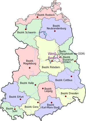 The territory of the German Democratic Republic (East Germany) from its creation on 7 October 1949 until its dissolution on 3 October 1990 | |||||||||||