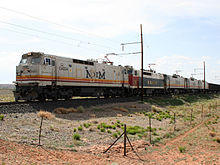 The Black Mesa and Lake Powell Railroad (BM&LP) was a new railroad built to transport coal from the Black Mesa Mine near Kayenta, Arizona to the Navajo Generating Station power plant at Page, Arizona. It was 78 miles (125.5 km) long and isolated from the national railroad network. The BM&LP was electrified at 50 kV 60 Hz AC, and was the first such electrification to use this voltage in the world.[2][3] The railroad was intended to run as a conveyor belt, with trains cycling between the coal mine and the plant. To operate this conveyor belt, GE Transportation Systems (GE) designed the E60C, though it was suitable for general mainline freight operation.[4]