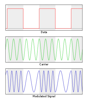 Frequency-shift keying (FSK) is a frequency modulation scheme in which digital information is transmitted through discrete frequency changes of a carrier signal.[1] The technology is used for communication systems such as telemetry, weather balloon radiosondes, caller ID, garage door openers, and low frequency radio transmission in the VLF and ELF bands. The simplest FSK is binary FSK (BFSK). BFSK uses a pair of discrete frequencies to transmit binary (0s and 1s) information.[2] With this scheme, the 1 is called the mark frequency and the 0 is called the space frequency.