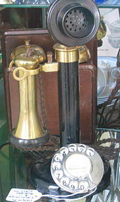 Until 1982 the GPO had a monopoly on the provision of all telephone lines and telephones within the UK, other than in Kingston upon Hull, and so the range was limited. Customers (known within the GPO as "subs", being short for 'subscribers') did not buy their telephones, they were rented from the GPO, together with the house wiring and the wiring connecting the house to the local network at a connection point known as a DP (distribution point). The majority of DPs were (and still are) at the top of what are still known in the UK as telegraph poles.[1]