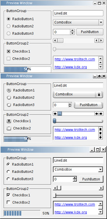 GUI widgets are graphical elements used to build the human-machine-interface of a program. GUI widgets are implemented like software components. Widget toolkits and software frameworks, like e.g. GTK+ or Qt, contain them in software libraries so that programmers can use them to build GUIs for their programs.