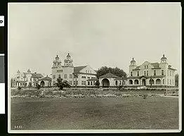 Native men were disproportionately criminalized and swept into this legalized system of indentured servitude.[8] As was recorded by Anglo-American settlers, "'White men, whom the Marshal is too discreet to arrest' ... spilled out of the town's many saloons, streets, and brothels, but the aggressive and targeted enforcement of state and local vagrancy and drunk codes filled the Los Angeles County Jail with Natives, most of whom were men." Most spent their days working on the county chain gang, which was largely involved with keeping the city streets clean in the 1850s and 1860s but increasingly included road construction projects as well.[10]