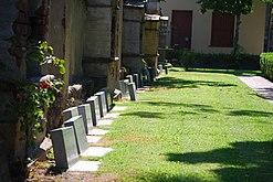 Entire villages were baptized and indoctrinated into the mission system with devastating results.[3] For example, from 1788 to 1815, natives of the village of Guaspet were baptized at San Gabriel. Proximity to the missions created mass tension for Native Californians, which initiated "forced transformations in all aspects of daily life, including manners of speaking, eating, working, and connecting with the supernatural."[3] As stated by scholars John Dietler, Heather Gibson, and Benjamin Vargas, "Catholic enterprises of proselytization, acceptance into a mission as a convert, in theory, required abandoning most, if not all, traditional lifeways." Various strategies of control were implemented to retain control, such as use of violence, segregation by age and gender, and using new converts as instruments of control over others.[3] For example, Mission San Gabriel's Father Zalvidea punished suspected shamans "with frequent flogging and by chaining traditional religious practitioners together in pairs and sentencing them to hard labor in the sawmill."[3] A missionary during this period reported that three out of four children died at Mission San Gabriel before reaching the age of 2.[8] Nearly 6,000 Tongva lie buried in the grounds of the San Gabriel Mission.[36] Carey McWilliams characterized it as follows: "the Franciscan padres eliminated Indians with the effectiveness of Nazis operating concentration camps...."[37]