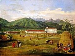 Resistance to Spanish rule demonstrated how the Spanish Crown's claims to California were both insecure and contested.[10] By the 1800s, San Gabriel was the richest in the entire colonial mission system, supplying cattle, sheep, goats, hogs, horses, mules, and other supplies for settlers and settlements throughout Alta California. The mission functioned as a slave plantation. In 1810, the "Gabrieleño" labor population at the mission was recorded to be 1,201. It jumped to 1,636 in 1820 and then declined to 1,320 in 1830.[36] Resistance to this system of forced labor continued into the early 19th century. In 1817, the San Gabriel Mission recorded that there were "473 Indian fugitives."[8] In 1828, a German immigrant purchased the land on which the village of Yang-Na stood and evicted the entire community with the help of Mexican officials.[41]