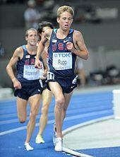 Rupp broke Bernard Lagat's American indoor 2-mile record when he won the USATF Classic meet in a time of 8:09.72 on February 11, 2012. (Lagat reclaimed the record in 2013 at the Millrose Games in New York City.) In June, Rupp became the sixth American to break 13 minutes for 5000 m when he ran 12:58.90 at the Prefontaine Classic.[22] He won the 10,000 m at the 2012 United States Olympic Trials in a time of 27:25.33. The run set a new Trials record, breaking Meb Keflezighi's 27:36.49 from 2004, and secured Rupp's second trip to the Olympic Games.[23]
