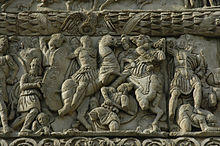 Galerius's army was reinforced probably in the spring of 298 by new contingents collected from the empire's Danubian holdings.[27] Narseh did not advance from Armenia and Mesopotamia leaving Galerius to lead the offensive in 298 with an attack on northern Mesopotamia via Armenia.[25] Diocletian may or may not have been present to assist the campaign.[28] Narseh retreated to Armenia to fight Galerius' force, to Narseh's disadvantage; the rugged Armenian terrain was favorable to Roman infantry, but not to Sassanid cavalry. Local aid gave Galerius the advantage of surprise over the Persian forces, and, in two successive battles, Galerius secured victories over Narseh.[25][27]