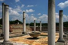 Galerius was born near Serdica,[15] in Dacia Ripensis, later named Dacia Mediterranea, though some modern scholars consider the strategic site where he later built his palace named after his mother – Felix Romuliana (Gamzigrad) – his birth and funeral place.[12] His father was a Thracian and his mother Romula was a Dacian woman, who left Dacia because of the Carpians' attacks.[16][17]:19 He originally followed his father's occupation, that of a herdsman, where he was nicknamed Armentarius, herdsman (Latin: armentum, lit. 'herd').