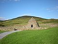 The doorway is 1.67 m (5.5 ft) high. It has a flat lintel. On the inside over the lintel, two holed stones project out from the wall, possibly for the attachment of a wooden door.