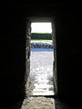 It is dimly lit, with only a tiny round-headed window in the east wall, opposite the entrance door. The window splays more widely towards the inside of the wall.