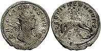 Antoninianus issued to celebrate LEG III ITAL VI P VI F, "Legio III Italica six times faithful and loyal."