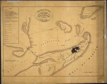 Indigenous inhabitants of Galveston Island called the island Auia.[8] Though there is no certainty regarding their route and their landings, Cabeza de Vaca and his crew were shipwrecked at a place he called "Isla de Malhado" in November 1528. This could have referred to Galveston Island or San Luis Island.[9] During his charting of the Gulf Coast in 1785, the Spanish explorer José de Evia labeled the water features surrounding the island "Bd. de Galvestown" and "Bahia de Galvestowm" [sic]. He was working under the orders of Bernardo de Gálvez. In his early chart, he calls the western end of the island "Isla de San Luis" and the eastern end, "Pt. de Culebras." Evia did not label the island itself on his map of 1799. Just five years later Alexander von Humboldt borrows the place names Isla de San Luis, Pte. De Culebras, and Bahia de Galveston. Stephen F. Austin followed his predecessors in the use of "San Luis Island," but introduced "Galveston" to refer to the little village at the east end of the island. Evidence of the name Galveston Island appears on the 1833 David H. Burr.[8]