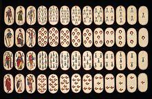 Some other games use tiles in place of cards; Rummikub is a variant of the Rummy card game family that uses tiles numbered in ascending rank among four colors, very similar in makeup to a 2-deck "pack" of Anglo-American playing cards. Mahjong is another game very similar to Rummy that uses a set of tiles with card-like values and art.