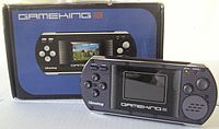 GameKing is a brand of handheld game consoles, designed and developed by Timetop in 2003, for the Hong Kong consumer market. The brand has three consoles, the GameKing I, the GameKing II and the GameKing III. A fourth console, the Handy Game, was produced by Timetop and shares some branding, but otherwise has little to do with the GameKing franchise.