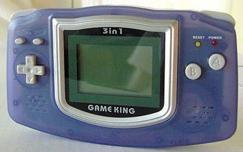The original GameKing console is a 8-bit handheld game console. It is based around a 65C02 CPU running at 6.0 MHz. It is fashioned to look like Nintendo's Game Boy Advance and comes in a wide array of vivid pastel colours, either opaque or transparent, and uses 2 AAA size batteries. The original GameKing lacks a backlit screen, a feature which has been added in its "successor", the GameKing II.