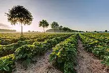 The other major method, which uses the same plants from year to year growing in rows or on mounds, is most common in colder climates.[10][11] It has lower investment costs, and lower overall maintenance requirements.[11] Yields are typically lower than in plasticulture.[11]