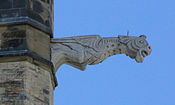 The primary use of the gargoyle was to illustrate evil through the form of the gargoyle, while another theory posits that grotesques in architecture were apotropaic devices.[20] Sometimes the use of the gargoyles illustrated pagan beliefs to reflect the unique cultural history of the community the cathedral is part of. In the 12th century, before the use of gargoyles as rain spouts, St. Bernard of Clairvaux was famous for speaking out against gargoyles carved on the walls of his monastery's cloister:[21]