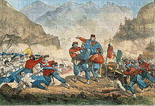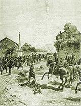 When the Franco-Prussian War broke out in July 1870, Italian public opinion heavily favored the Prussians, and many Italians attempted to sign up as volunteers at the Prussian embassy in Florence. After the French garrison was recalled from Rome, the Italian Army captured the Papal States without Garibaldi's assistance. Following the wartime collapse of the Second French Empire at the Battle of Sedan, Garibaldi, undaunted by the recent hostility shown to him by the men of Napoleon III, switched his support to the newly declared French Third Republic. On 7 September 1870, within three days of the revolution of 4 September in Paris, he wrote to the Movimento of Genoa, "Yesterday I said to you: war to the death to Bonaparte. Today I say to you: rescue the French Republic by every means."[38] Subsequently, Garibaldi went to France and assumed command of the Army of the Vosges, an army of volunteers. The socialist Louis Blanc referred to Garibaldi as a "soldier of revolutionary cosmopolitanism" based on his support for liberation movements through the world.[39]