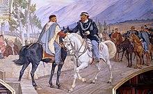 The next day, he declared himself dictator of Sicily in the name of Victor Emmanuel II of Italy. He advanced to the outskirts of Palermo, the capital of the island, and launched a siege on 27 May. He had the support of many inhabitants, who rose up against the garrison—but before they could take the city, reinforcements arrived and bombarded the city nearly to ruins. At this time, a British admiral intervened and facilitated a truce, by which the Neapolitan royal troops and warships surrendered the city and departed. The young Henry Adams—later to become a distinguished American writer—visited the city in June and described the situation, along with his meeting with Garibaldi, in a long and vivid letter to his older brother Charles.[27] Historians Clough et al. argue that Garibaldi's Thousand were students, independent artisans, and professionals, not peasants. The support given by Sicilian peasants was not out of a sense of patriotism but from their hatred of exploitative landlords and oppressive Neapolitan officials. Garibaldi himself had no interest in social revolution and instead sided with the Sicilian landlords against the rioting peasants.[28]