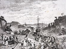 After side trips to Xiamen and Manila, Garibaldi brought the Carmen back to Peru via the Indian Ocean and the South Pacific, passing clear around the south coast of Australia. He visited Three Hummock Island in the Bass Strait.[22] Garibaldi then took the Carmen on a second voyage: to the United States via Cape Horn with copper from Chile, and also wool. Garibaldi arrived in Boston and went on to New York. There he received a hostile letter from Denegri and resigned his command.[22] Another Italian, Captain Figari, had just come to the U.S. to buy a ship and hired Garibaldi to take the ship to Europe. Figari and Garibaldi bought the Commonwealth in Baltimore, and Garibaldi left New York for the last time in November 1853.[23] He sailed the Commonwealth to London, and then to Newcastle on the River Tyne for coal.[22]