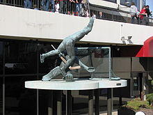 In that first year with Philadelphia, Dornhoefer scored 13 goals and 43 points while accumulating 134 penalty minutes and gaining a reputation as a hard hitting, grinding left winger with a touch for scoring. Two seasons later he reached the 20-goal plateau for the first time, a mark he would achieve in five seasons. In 1973 he had his best season, scoring 30 goals and 49 assists for 79 points and being named to play in the All-Star Game. The most famous play of his career came in the 1973 Stanley Cup playoffs when he scored a crucial overtime goal against the Minnesota North Stars on a solo rush. The goal was memorialized on a statue at the Spectrum, which was demolished in 2010-11. Plans are for the Spectrum statues to be installed in a new retail, restaurant and entertainment complex to be built on a nearby site.[1]