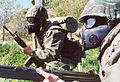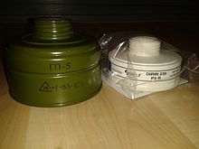 Some World War II or Soviet Cold War gas masks contained chrysotile asbestos or crocidolite asbestos in their filters.[2][3][4] It is unknown how long for certain the materials were used in filters. Breathing blue asbestos in the factories resulted in the death of 10 percent of the workforce due to pleural and peritoneal mesothelioma. This rate was between 2.5 and 3.2 times the normal incidence of lung or respiratory cancers.[5]