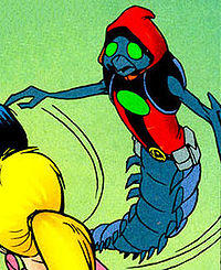 Gates was the third non-biped member (after Quislet and Tellus) in the history of the Legion (the first after the 1994 Reboot). He was also unique amongst Legionnaires in being their only unwilling member, having been drafted by his planetary government to represent them in the Legion (which he perceived as being militaristic and inherently fascist). Apparently Gates is one of the very few free-thinkers on his homeworld; the rest are unindividualistic conformists.[1]