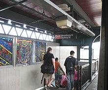 Gates Avenue was originally opened by the Union Elevated Railroad on May 13, 1885 for the BMT Lexington Avenue Line, and has been in continuous operation since then. The BMT Jamaica Line connected to the station on June 25, 1888.[4] Prior to the Dual Contracts, trains either operated down Broadway to Broadway Ferry (which closed upon the opening of the Williamsburg Bridge tracks to Essex Street) or Lexington Avenue, eventually merging onto the Myrtle Avenue El.[5] The Dual Contracts expanded the BMT Jamaica Line, including Gates Avenue, to three tracks, allowing for express service, as well as expanding service in Manhattan down Nassau Street. In 1950, the Lexington Avenue El closed, resulting in the redirection of all trains to the Williamsburg Bridge.