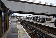By 3 February 2014, completion was marked by a ceremony officiated by Minister of State for Transport Baroness Kramer, who formally opened the new platform.[17] Constructed by VolkerFitzpatrick, platform 7 is served by a 975-metre (3,199 ft) loop from the down fast line and used by services which formerly called at platform 5. VolkerFitzpatrick were responsible for track and signalling modifications.[16] This has allowed platforms 5 and 6 to be dedicated to Gatwick Express services, thereby eliminating conflicts with slower services when formerly they crossed to platforms 1 and 2.[16][18] The project was finished on schedule and budget, despite extreme weather conditions during the winter of 2013/2014.[16]