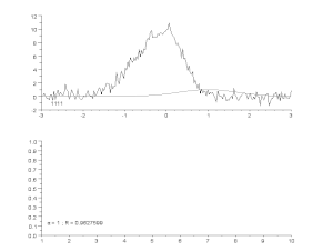 Starting with the initial estimates of and , after five iterations of the Gauss–Newton algorithm the optimal values and are obtained. The sum of squares of residuals decreased from the initial value of 1.445 to 0.00784 after the fifth iteration. The plot in the figure on the right shows the curve determined by the model for the optimal parameters with the observed data.