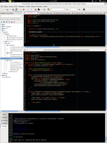 Geany (IPA:dʒiːni[3]) is a lightweight GUI text editor[4] using Scintilla and GTK, including basic IDE features. It is designed to have short load times, with limited dependency on separate packages or external libraries on Linux. It has been ported to a wide range of operating systems, such as BSD, Linux, macOS,[5] Solaris and Windows. The Windows port lacks an embedded terminal window; also missing from the Windows version are the external development tools present under Unix, unless installed separately by the user.[6] Among the supported programming languages and markup languages are C, C++, C#, Java, JavaScript, PHP, HTML, LaTeX, CSS, Python, Perl, Ruby, Pascal, Haskell, Erlang, Vala and many others.[7]