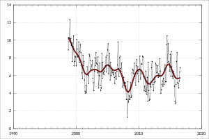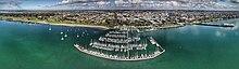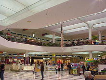 Market Square, the first enclosed shopping centre in the city, was opened in 1985, with neighbouring Bay City Plaza opened in 1988.[47] The Pyramid Building Society, founded in Geelong in 1959,[48] collapsed in 1990, leaving debts of AU$1.3 billion to over 200,000 depositors,[49] and causing the Geelong economy to stagnate.[50] On 18 May 1993, the City of Greater Geelong was formed by the amalgamation of a number of smaller municipalities with the former City of Geelong.[51] The Waterfront Geelong redevelopment, started in 1994, was designed to enhance use and appreciation of Corio Bay[52] and in 1995 the Barwon River overflowed in the worst flood since 1952.[53]