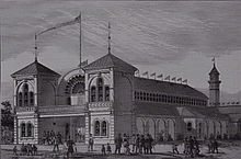 In 1866, Graham Berry started a newspaper, the Geelong Register, as a rival to the established Geelong Advertiser. When this proved unsuccessful, he bought the Advertiser and made himself editor of the now-merged papers.[35] Using the paper as a platform, he was elected for West Geelong in 1869. In 1877, he switched to Geelong, which he represented until 1886, and served as Victorian Premier in 1875, 1877–1880, and 1880–1881.[36] On the Market Square in the middle of the city, a clock tower was erected in 1856, and an Exhibition Building was opened in 1879.