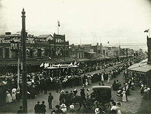 The town of Geelong officially became a city on 8 December 1910. The city gained a number of essential services, with electric light supplied by the Geelong Power Station starting in 1902, the Geelong Harbour Trust was formed in December 1905,[40] and the Geelong Waterworks and Sewerage Trust formed in 1908. Electric trams began operation in 1912, travelling from the city centre to the suburbs until their demise in 1956.[41] The first of many stores on the Market Square was opened in 1913,[13] and the first Gala Day festival was held in 1916.[13]