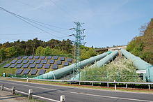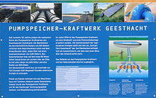 Geesthacht is a major energy and scientific research center. It has the Krümmel Nuclear Power Plant (closed 2011 after Fukushima - "Atomausstieg"), a boiling water nuclear reactor on the River Elbe, and a 120 MW pumped storage hydroelectrical plant situated within a few hundreds metres of the nuclear power plant. It consists of an artificial lake 80m above the river, where the water is pumped up from, and 600 MWh storage for later use in generating electricity when demand is high.[2] Small wind and solar plants also produce electricity or pump water.