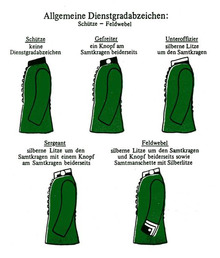 Then rank insignia was a single white celluloid-star on the stand-up collar of the so-called Waffenrock (en: Tunic) on gorget patch (de: Paroli). Stand-up collar and background of the gorget patch showed a particular egalisation colour.