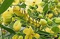 All parts of this plant contain the toxic strychnine-related alkaloids gelsemine and gelseminine and should not be consumed.[9] The sap may cause skin irritation in sensitive individuals. Children, mistaking this flower for honeysuckle, have been poisoned by sucking the nectar from the flower.[10] The nectar is also toxic to honeybees,[11] which may cause brood death when gathered by the bees. The nectar may, however, be beneficial to bumblebees. It has been shown that bumblebees fed on gelsemine have a reduced load of Crithidia bombi in their fecal matter after 7 days although this difference was not significant after 10 days). Reduced parasite load increases foraging efficiency, and pollinators may selectively collect otherwise toxic secondary metabolites as a means of self-medication.[12]