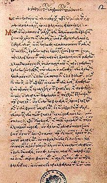 In 1428 Pletho was consulted by Emperor John VIII on the issue of unifying the Greek and Latin churches, and advised that both delegations should have equal voting power.[8] Byzantine scholars had been in contact with their counterparts in Western Europe since the time of the Latin Empire, and especially since the Byzantine Empire had begun to ask for Western European help against the Ottomans in the 14th century. Western Europe had some access to ancient Greek philosophy through the Catholic Church and the Muslims, but the Byzantines had many documents and interpretations that the Westerners had never seen before. Byzantine scholarship became more fully available to the West after 1438, when Byzantine emperor John VIII Palaeologus attended the Council of Ferrara, later known as the Council of Florence, to discuss a union of the Eastern (Orthodox) and Western (Catholic) churches. Despite not being a theologian, Pletho was chosen to accompany John VIII on the basis of his renowned wisdom and morality. Other delegates included Pletho's former students Bessarion, Mark Eugenikos and Scholarios.[14]