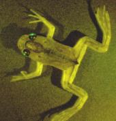 When exposed to 13 °C water the zebrafish modified to express a carp creatine kinase (right) maintained swimming behaviour, while wild type zebrafish (left) could not.[237]