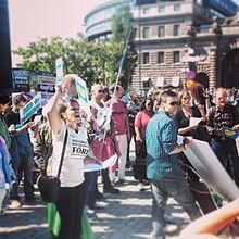 The March Against Monsanto is an international grassroots movement and protest against Monsanto corporation, a producer of genetically modified organism (GMOs) and Roundup, a glyphosate-based herbicide.[80] The movement was founded by Tami Canal in response to the failure of California Proposition 37, a ballot initiative which would have required labeling food products made from GMOs. Advocates support mandatory labeling laws for food made from GMOs .[81]
