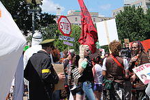 The initial march took place on May 25, 2013. The number of protesters who took part is uncertain; figures of "hundreds of thousands" and the organizers' estimate of "two million"[82] were variously cited. Events took place in between 330[81] and 436[82] cities around the world, mostly in the United States.[81][83] Many protests occurred in Southern California, and some participants carried signs expressing support for mandatory labeling of GMOs that read "Label GMOs, It's Our Right to Know", and "Real Food 4 Real People".[83] Canal said that the movement would continue its "anti-GMO cause" beyond the initial event.[82] Further marches occurred in October 2013 and in May 2014 and 2015. The protests were reported by news outlets including ABC News,[84] the Associated Press,[82] The Washington Post,[85] The Los Angeles Times,[83] USA Today,[82] and CNN (in the United States), and Russia Today[86] and The Guardian[80] (outside the United States).