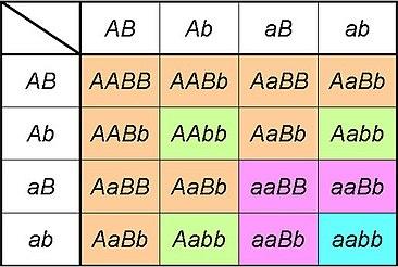 Certain phenotypes do not follow the same patterns as determined by Mendelian genetics. This is often due to the final phenotype being determined by multiple genes. The resulting phenotype of these related genes are essentially a combination of the individual genes, creating an even greater variety. Being connected to multiple genes dramatically increases the number of possible genotypes for the trait. With the examples found in Mendelian genetics, each trait had one gene, with two possible inherited alleles, and 3 possible combinations of those alleles. If each gene still only has two alleles, the genotype for a trait involving 2 would now have nine possible genotypes. For example, you may have one gene expressed with "A" for the dominant allele and "a" for the recessive allele, and the other gene using "B" and "b" in the same way. The possible genotypes for this trait are AABB, AaBB, aaBB, AABb, AaBb, aaBb, aaBB, aaBb, and aabb. Below we will discuss a few ways genes can interact to contribute to a single trait
