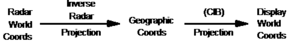 This section explains the actual geo warping or re-projection process when applied to radar video in real time. Assume we want to display radar video on top of a satellite image. As an example we use the CIB projection which is used to display satellite data in CIB (Controlled Image Base) format.